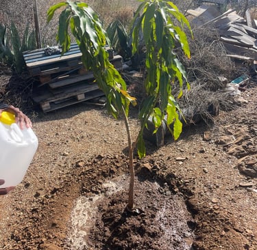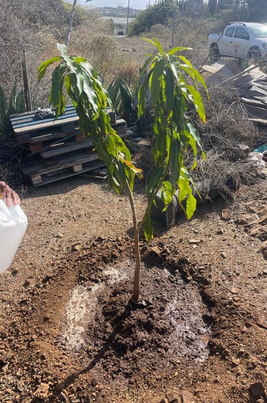 Een stap in geloof: Norvin heeft een mangoboompje geplant bij de oprit naar het Coming Home huis